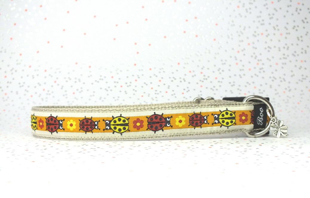 Halsband mit einer aufgenähten Webbordüre und einer samtig weichen Unterfütterung. Durch einen Metall Schieber ist das Halsband stufenlos größenverstellbar von ca. 19-30 cm oder ca. 22-35 cm ohne am Hals zu verrutschen. Leicht gewölbt sorgt ein schwarzer Klickverschluss für einen guten Sitz am Hundehals. Oft als Variante auch mit einem Aluverschluss oder als Zugstopp Halsband möglich. Die Auswahl findest du unten. Der kleine Anhänger ist nur Tüddelkrams fürs Foto und kann bei Nichtgefallen ganz leicht von dir abgemacht werden. Das Halsband ist waschbar bis 30 Grad. Meine Empfehlung für dich ist Handwäsche um die tollen Farben und das Material zu schonen. Weitere Infos zum Halsband findest auf der Infoseite.